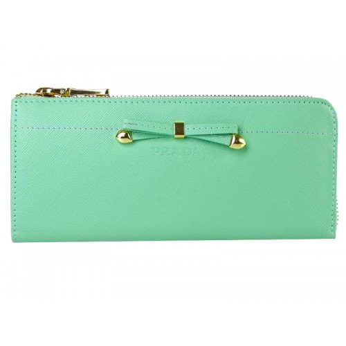 Prada Saffiano Zipper Wallet With Bow Detail Light Green